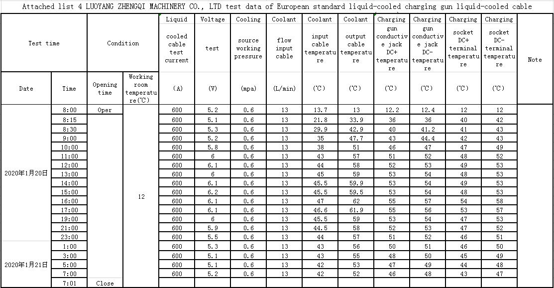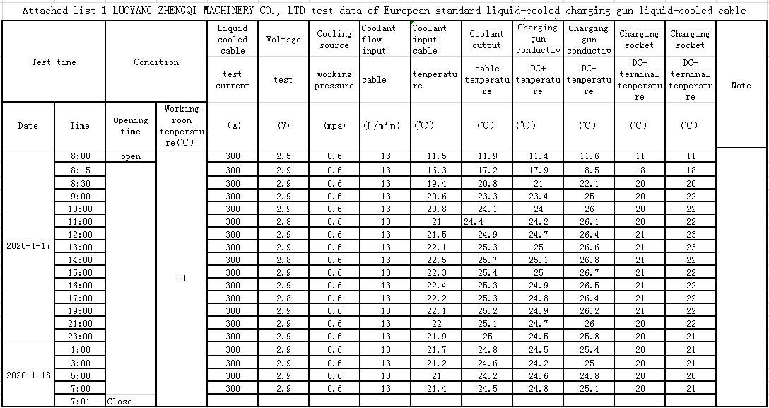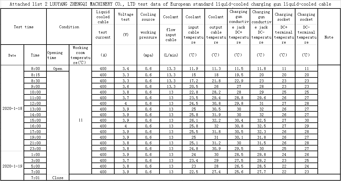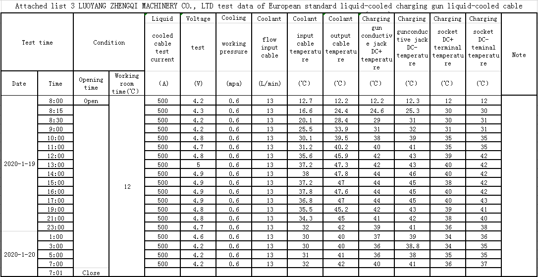 2.2 European standard liquid cooled charging gun、liquid cooled cable performance index